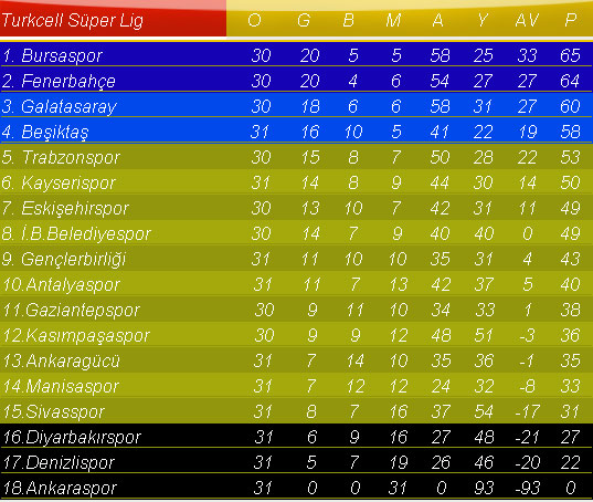 puan durumu şöyle oluştu: