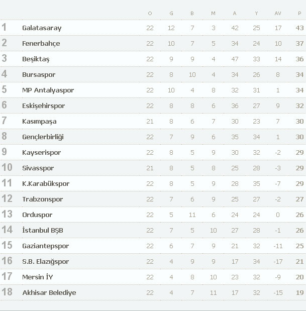Süper Lig'in 22. haftasında alınan sonuçlar, kalan maçın programı, son puan durumu ve 23. haftanın maçları şöyle: