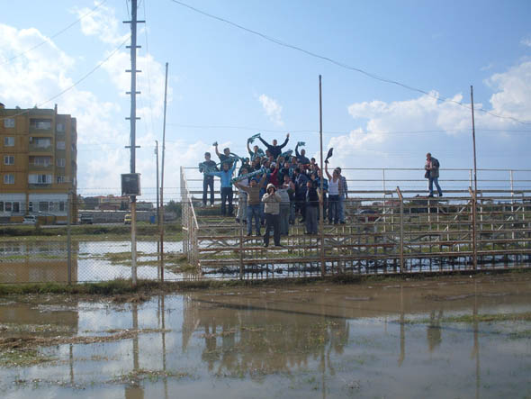 Sahadaki su birikintileri değil futbol oynamaya, yürümeye bile müsaade etmiyor