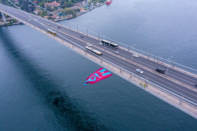Lig şampiyonu olan takımın bayrağının asıldığı İstanbul'daki 15 Temmuz Şehitler Köprüsü'ne de Trabzonspor'un bayrağı asıldı.
