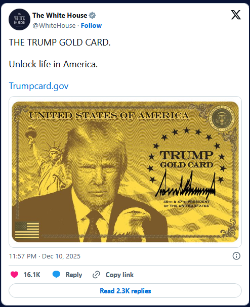 Trump yönetimi, yabancı nitelikli iş gücü getirmek isteyen şirketler için de "Trump Corporate Gold Card" uygulaması başlattı. Şirketler bu kart yoluyla 2 milyon dolar ödeyerek çalışanları için "rekor zamanda" oturma izni alabilecek.