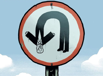 Karikatürde Erdoğan'ın trafik levhası olarak 'u dönüşü' yaptığı görünüyor.