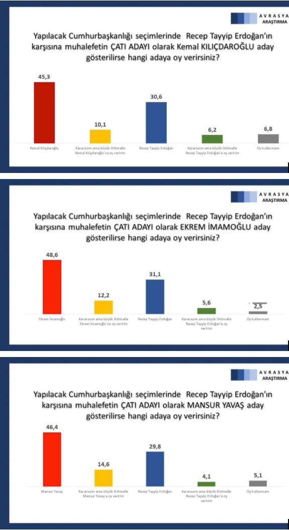 Kararsızlar dağıtıldığında ise CHP yüzde 28,4'e yükselirken, AKP'nin oy oranı ise yüzde 26,3 olarak belirlendi.