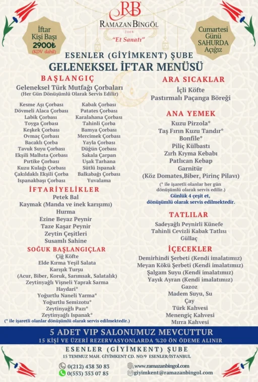 Bingöl’ün iki restoranında da farklı fiyat politikası izlediği görüldü. Esenler’de kişi başı 2900 TL+KDV, Ümraniye şubesinde ise kişi başı 2550 TL+KDV ücret duyuruldu.